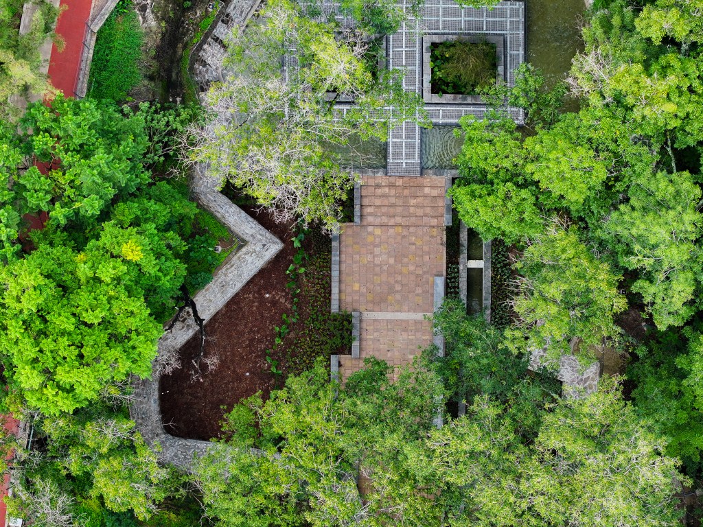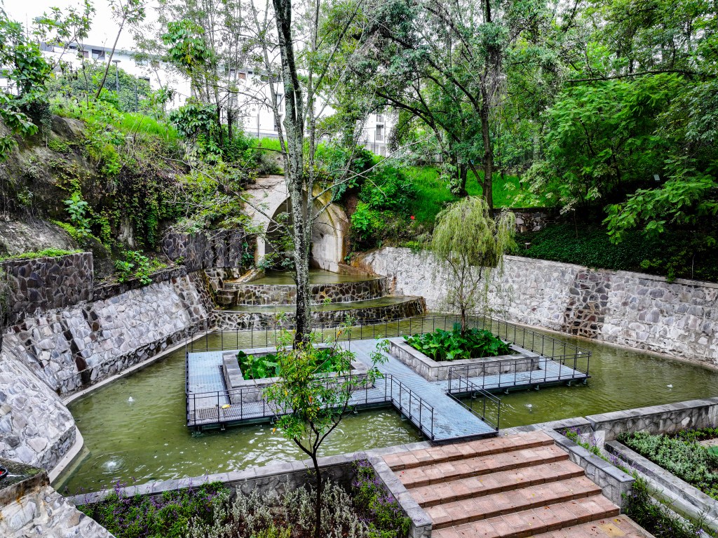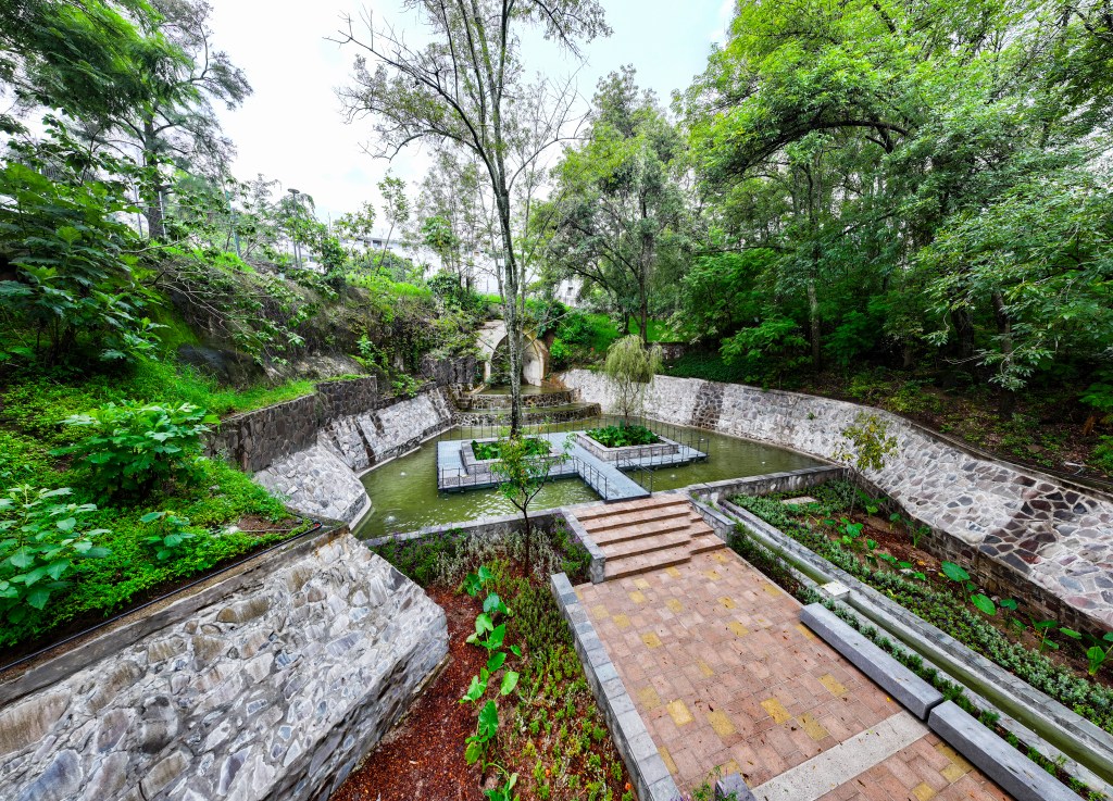 Aprovechando la topografía natural del sitio y la presencia de un nacimiento de agua, la intervención de ambos arquitectos tomó como punto de partida el respeto y la contemplación del entorno natural. La propuesta se centró en realzar el espacio del ojo de agua, integrando elementos arquitectónicos y paisajísticos que armonizan con el paisaje.