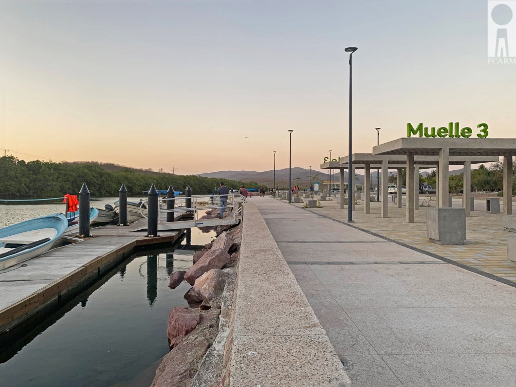 El proyecto comprende un andador arbolado e iluminado que articula diferentes actividades, dentro de estas se encuentran dos módulos de servicio. El primer módulo es La Cooperativa de Pescadores en la cual se limpia y se almacena el pescado en contenedores, para poder transportarlo y venderlo posteriormente. El segundo módulo cuenta con sanitarios y un espacio de venta de comida procesada, donde los mismos pescadores pueden dar a probar su pesca a los visitantes. Por ultimo a lo largo del andador se generan zonas de contemplación, descanso y muelles flotantes para las lanchas.