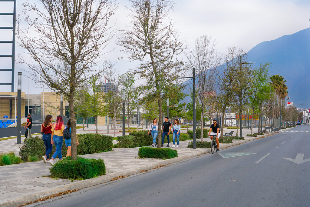 Proyectos emblemáticos como las Calles Completas García Roel, Luis Elizondo y Junco de la Vega han redefinido vialidades históricamente dominadas por el automóvil, reconvirtiéndolas en espacios accesibles, verdes y seguros para peatones, ciclistas, transporte público y vehículos particulares. Estas intervenciones, alineadas con los lineamientos del Manual de Calles Mx de la SEDATU, incorporan banquetas amplias con accesibilidad universal, cruces peatonales seguros, reductores de velocidad, nueva iluminación, mobiliario urbano, señalética, arbolado nativo y la mejora integral del paisaje urbano.